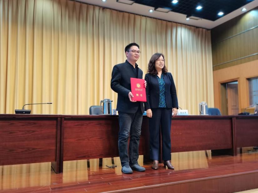 讲座伊始,王淑军代表公司为郭全友颁发bevictor伟德硕士生导师证书。
