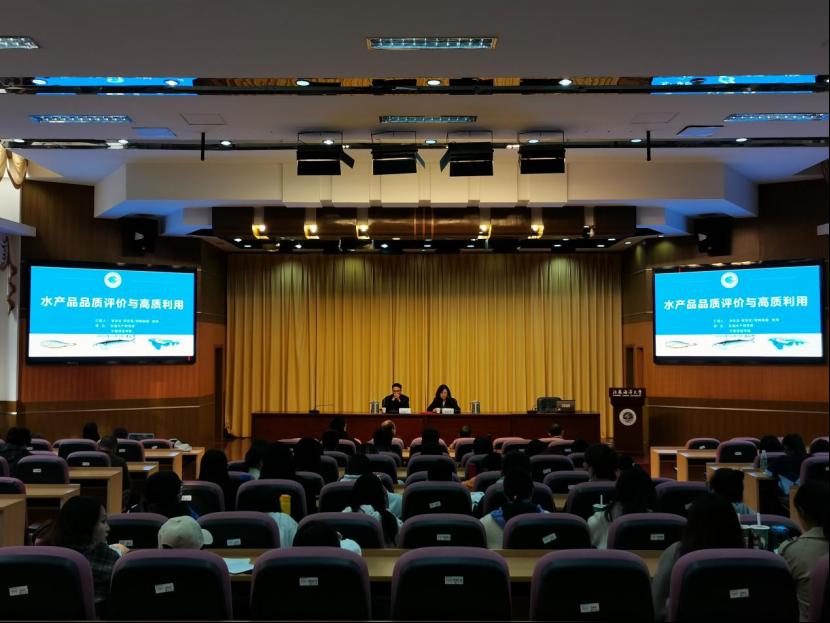 郭全友从水产品品质评价体系构建、水产品加工与综合利用、水产品目标微生物控制等方面为切入点,对我国水产品加工做了介绍。郭全友详细讲述了水产品类加工过程中出现的主要问题、水产品加工常见的产品形式以及水产品加工技术体系构建。此外,郭全友还介绍了自身团队关于远洋海产品温和加工与品质预报技术研究、东海典型渔业资源加工与功能食品研究、南极磷虾关键加工技术研究及产业化示范。最后,郭全友鼓励同学们刻苦学习、努力钻研,不断加深对水产品加工的研究。