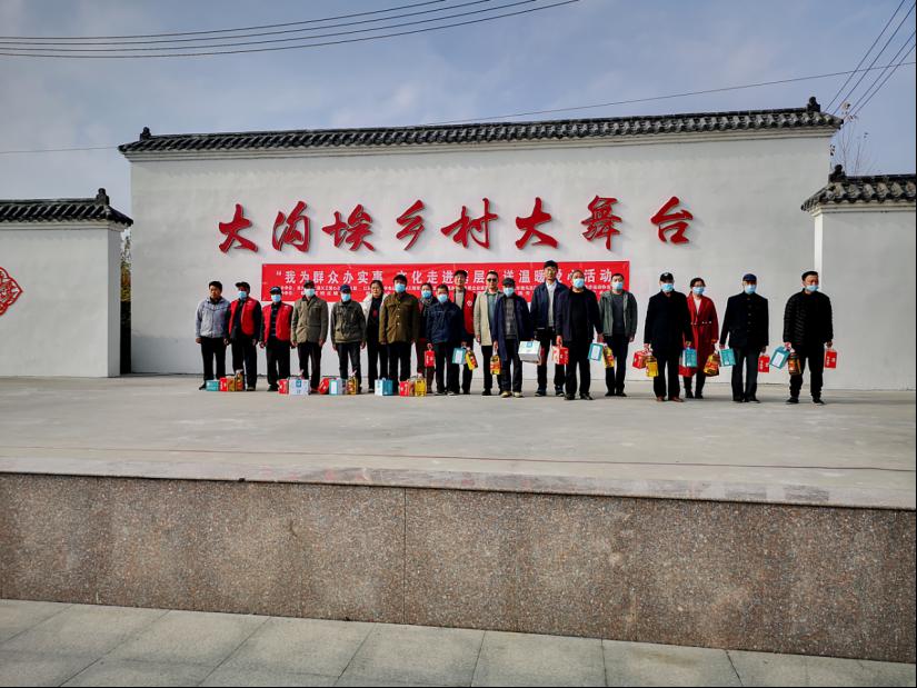 在赣榆区班庄镇党委、班庄镇大沟埃村村民委员会、连云港市红旗义工爱心之家党支部的支持下,上午9时,公司党总支来到赣榆区班庄镇大沟埃村,为100多位当地村民、抗美援朝老战士家属、贫困户带来“我为群众办实事、文化走进基层”送温暖爱心活动。