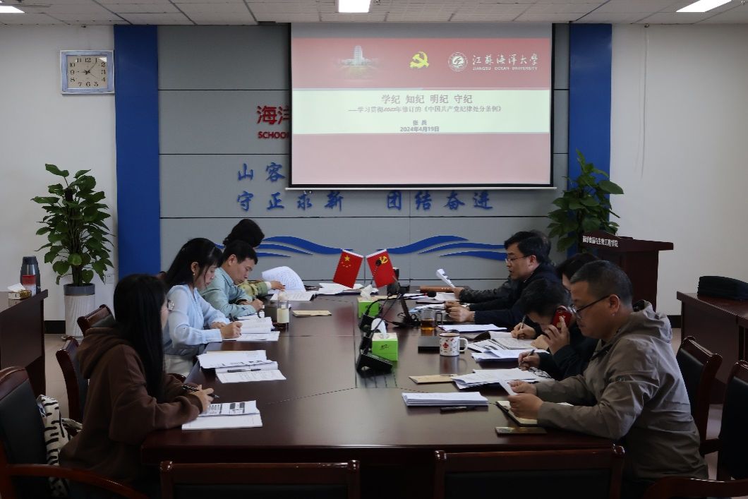 4月19日上午,海洋食品与生物工程公司党委在主楼606会议室召开理论学习中心组学习会议,专题学习《中国共产党纪律处分条例》。公司党委理论学习中心组成员,党支部书记参加会议。会议由公司党委书记张兵主持。