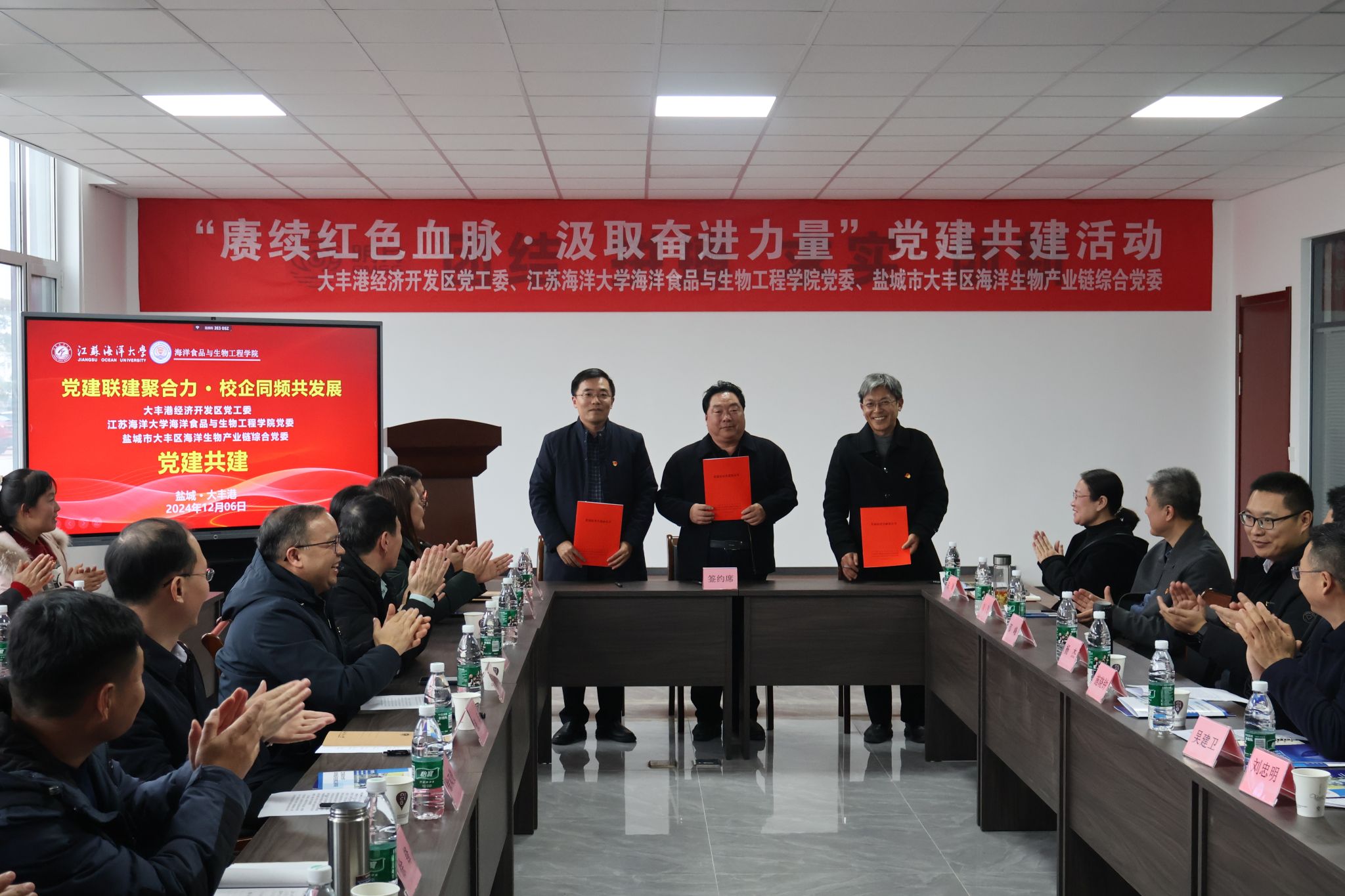 为深入贯彻落实党的二十届三中全会精神,推进“高公司党组织对接产业链党组织”专项行动,12月6日下午,公司党委与盐城大丰区海洋生物产业链综合党委、大丰港经济开发区党工委开展“党建联建聚合力•校企同频共发展”党建共建活动。