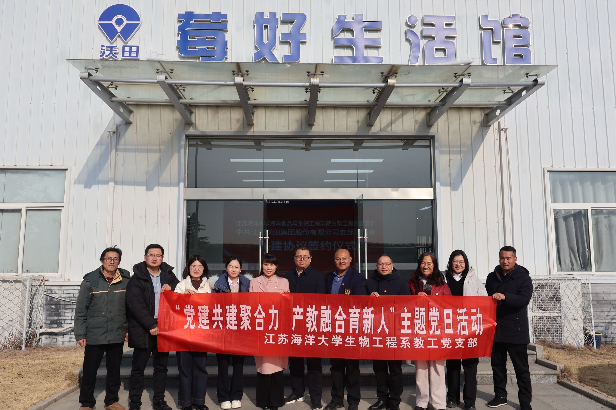 ​公司党委副书记郭利、副经理盘赛昆、生物工程系党支部书记孙颖颖及部分党员教师代表,江苏沃田集团股份有限公司集团副总裁、党委书记李松松及公司相关负责人参加了活动。