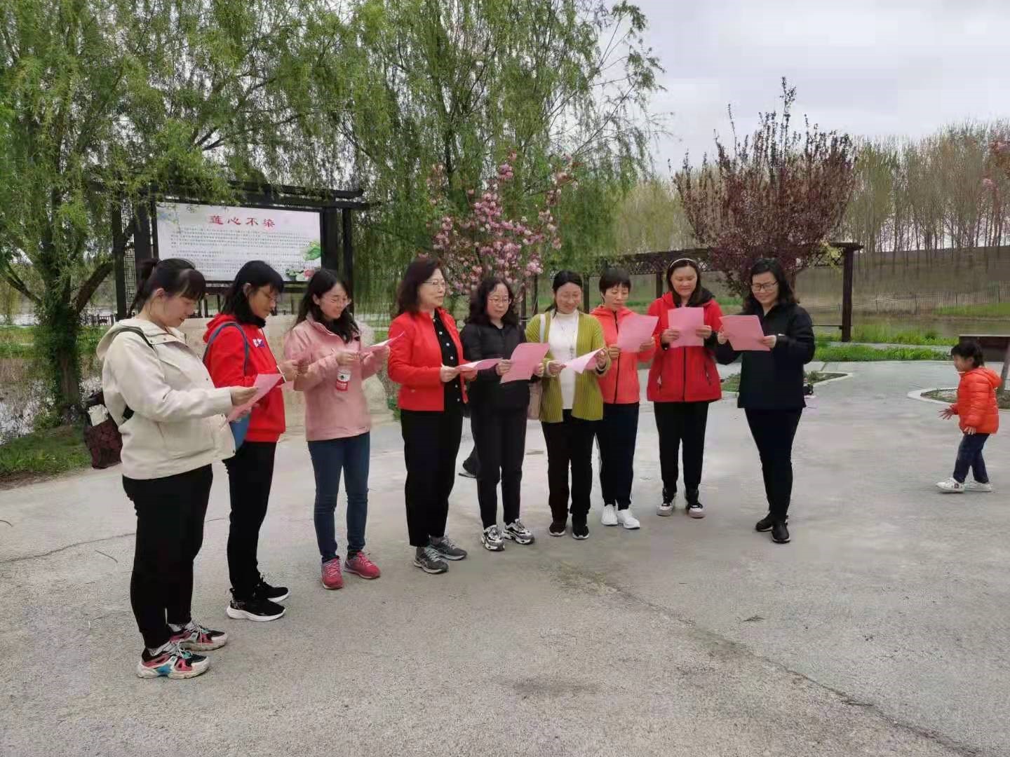 四月芳菲,巾帼如歌,2021年4月11日,公司党政领导带领女教职工来到潮河湾杨集革命纪念馆前,开展“诵读红色家书 感悟先烈初心 展巾帼风采”党史学习教育。