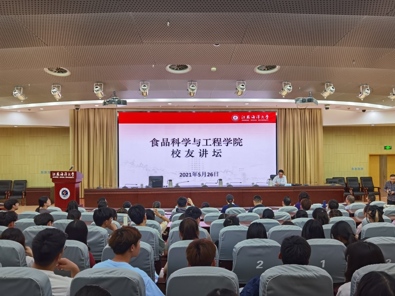杨震峰教授,食品98(2)班优秀员工,工学博士,教授,博士、硕士研究生导师,浙江万里公司公司党委委员,董事长助理,生物与环境公司经理。主持完成国家自然科学基金项目3项。发表论文80余篇,其中SCI收录论文40余篇。他以“识变、应变、求变”为题,介绍了自己的母校求学经历,从毕业时的“苍梧路,芦苇荡,风吹草低见校园;棉花地,养鱼塘,一屋住进八大汉…”到重逢时的“苍梧路,展新颜,江苏海洋创新源;做理论,又推广,顶天立地科研忙…”。他也介绍了自己工作和科研的经历,就未来食品技术变革和转型提出自己的看法,“相通则共进,相避则共退”。最后,他感谢了母校的悉心培养,希望加强和母校的交流合作,携手共进。