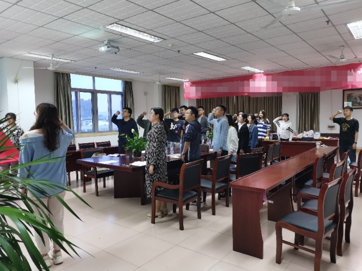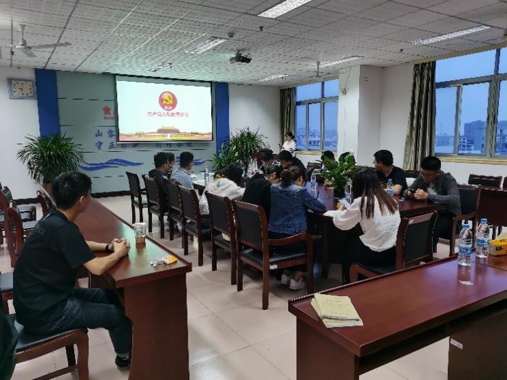 活动由观看中国共产党成立视频开始。视频内容是从最近播出的优秀电视剧《觉醒年代》中节选的,讲述的是1921年前后各地成立共产党小组,并在上海市兴业路76号、浙江嘉兴红船召开中共一大过程。观看视频后,与会党员感慨万分,深深体会到了革命先烈在当时的旧中国寻求出路的不易,纷纷表示作为新时代的中国共产党员以及中国青年,更应该珍惜革命先辈们抛头颅,洒热血为我们创造的当今和平优越的学习和工作环境,树立为祖国为人民永久奋斗、赤城奉献的坚定理想,立志为民族复兴、国家富强作贡献。国家不可一日无青年,青年不可一日无觉醒。今天新时代中国青年处在中华民族发展的最好时期,既面临着难得的建功立业的人生际遇,也面临着“天将降大任于斯人”的时代使命。大家不约而同的起立,面对党旗,重温入党誓词及佩戴党徽。