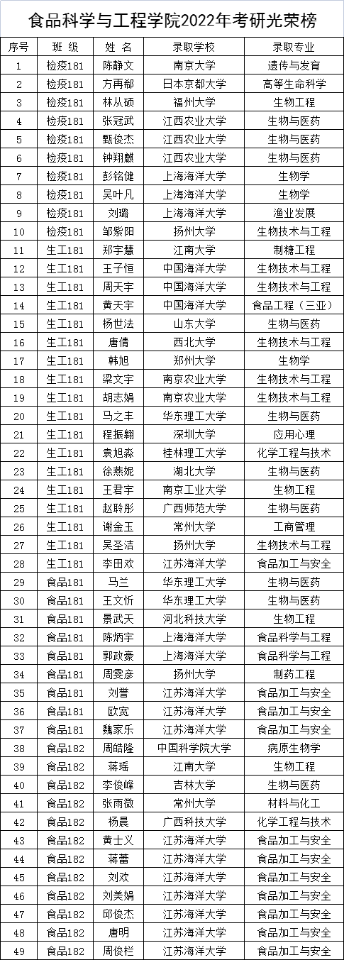bevictor伟德2022届毕业生考研共上岸49人,考研率达36.56%。其中25人被中国科公司大学、江南大学、南京大学、山东大学、吉林大学、京都大学、中国海洋大学等海内外知名高校录取。诞生了一个学霸宿舍A10-201,宿舍四朵金花徐燕妮、郑宇慧、赵聆彤、袁旭淼全部上岸。