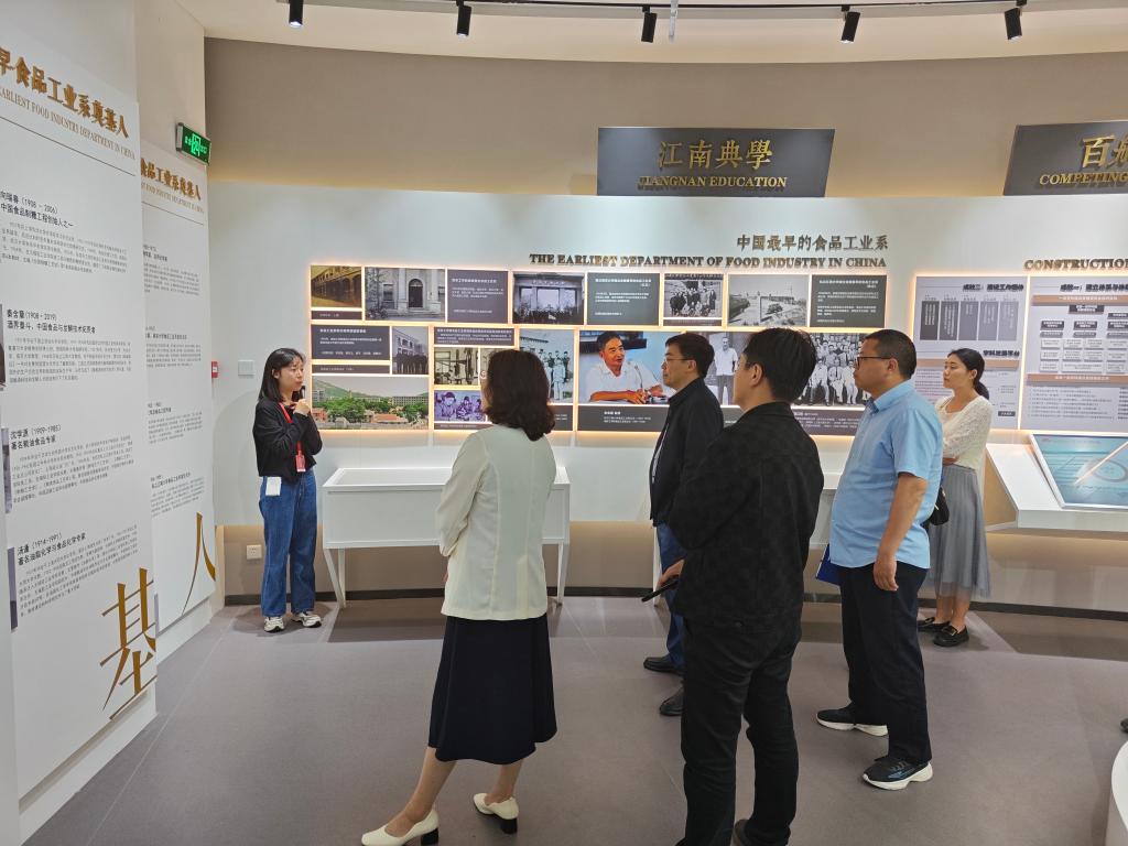 在江南大学食品公司,该公司党委副书记李雷介绍了公司的基本情况、学科发展、党团工作、人才培养等方面的优秀经验和做法,双方在员工工作、党团建设、班级管理等方面进行深入交流和讨论。调研组一行还参观了江南大学食品公司食品学科史馆。