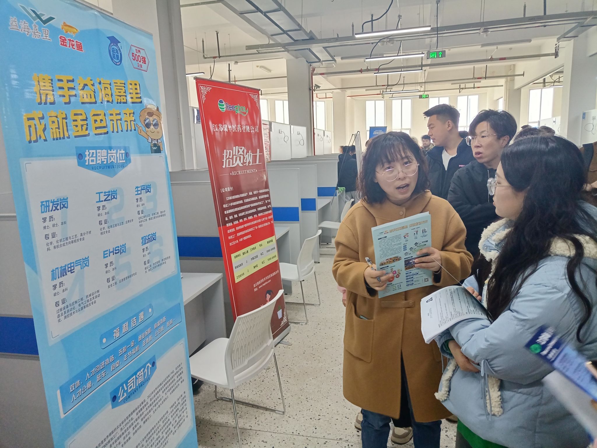 本次招聘会活动共邀请了22家食品、化工类优质企业,为毕业生提供了合成工程师、研发工程师、安全员、水处理工程师等300多个就业岗位。活动现场人来人往,公司领导、辅导员、班主任与参会企业亲切交流,开展访企拓岗工作,并为现场求职的毕业生们鼓劲加油;招生与就业处领导、老师现场开展简历指导、政策答疑等。员工们积极与企业面对面交流,企业负责人热情地解答同学们在应聘求职方面的疑惑,并主动介绍企业概况、岗位需求以及薪资待遇等,招聘会现场气氛热烈。