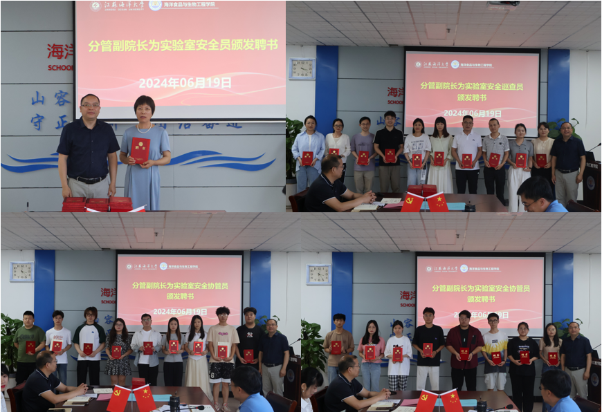 吴少杰副经理宣读实验室安全员、实验室安全巡查员、实验室安全协管员聘任结果。盘赛昆副经理为实验室安全员、巡查员、协管员颁发聘书。