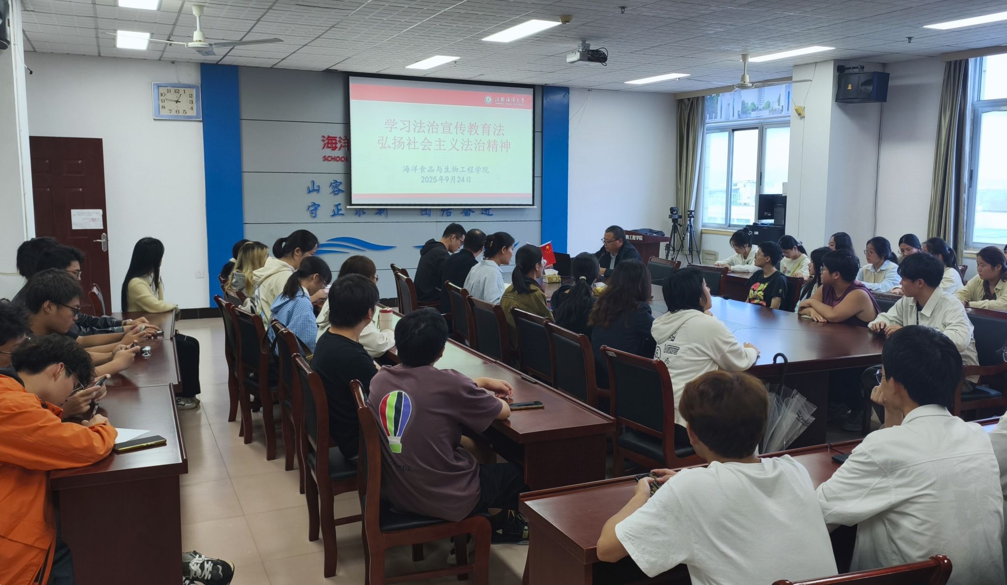 为深入学习贯彻习近平法治思想,提高校园法治宣传教育实效,9月24日,公司组织召开全院班干部专题学习会议,围绕“学习法治宣传教育法,弘扬社会主义法治精神”主题进行集中学习。公司党委副书记郭利、全体辅导员及全体班级干部参加会议。会议由郭利主持。